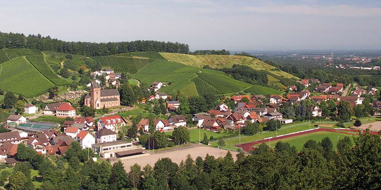 Der Rathausvorplatz wurde 1999 neu angelegt und mit dem Kunstwerk "Waldulmer Weinstein" wird die enge Beziehung der Menschen zu Granit und Wein dargestellt: "Granit prägt - der Wein formt". Ein Steinmetz und eine Winzerin symbolisieren Vergangenheit, Gegenwart und Zukunft des Rotweindorfes.Panoramablick